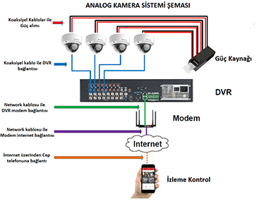 Analog kamera sistemleri, görüntüyü elektriksel sinyallere çevirerek koaksiyel kablolar üzerinden bir kayıt cihazına (DVR – Digital Video Recorder) ileten geleneksel güvenlik kamerası sistemleridir. Görüntü sinyali dijital değil, analog olarak iletilir; DVR cihazı bu sinyali dijitalleştirerek kayıt eder.